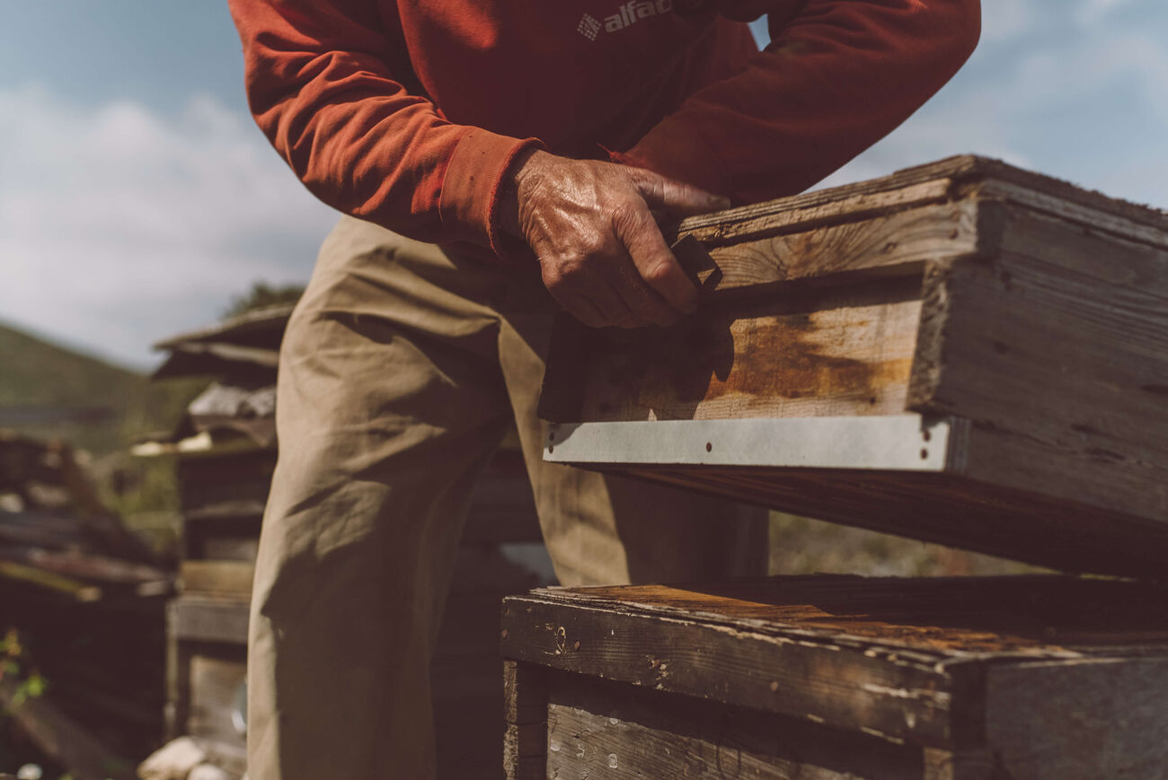 Jeden Tag wandert er morgens früh, wenn alle noch schlafen, zu seinen Bienenstöcken.