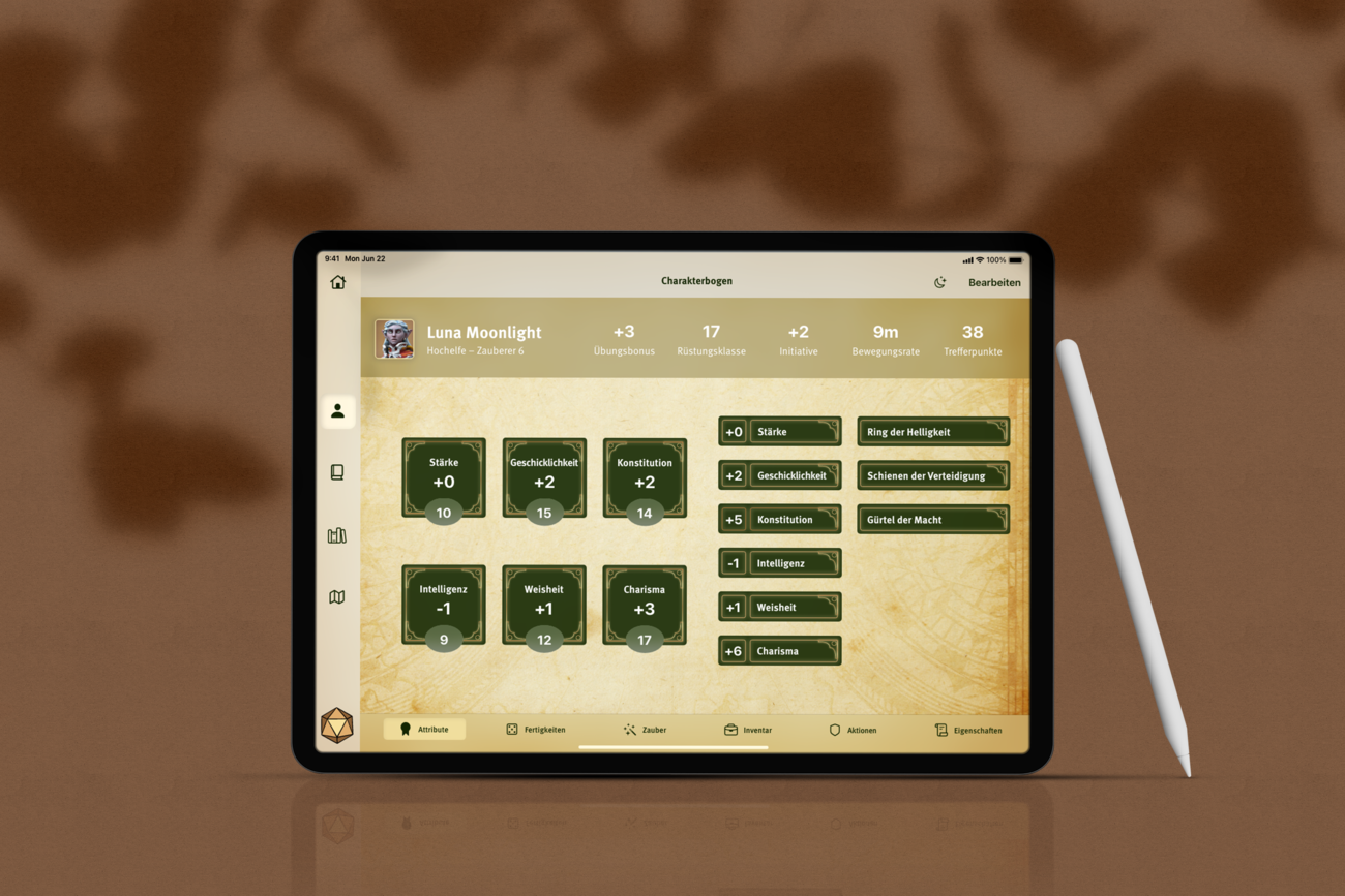 Während dem Spielen werden viele Notizen über das Abenteuer gemacht, welche sich in verschiedene Kategorien aufteilen, z.B. das „Inventar“, in dem aufgeschrieben wird, was während des Abenteuers gesammelt wird. Diese sind oft unordentlich, auf verschiedenen Zetteln notiert und benötigen ausreichend Platz, welcher oft unterschätzt wird. In dieser Bachelorarbeit habe ich mich damit beschäftigt, wie das Spielerlebnis verbessert werden kann. Das Ergebnis sind ein Notizbuch und eine App zugeschnitten auf die Bedürfnisse der Spielenden.