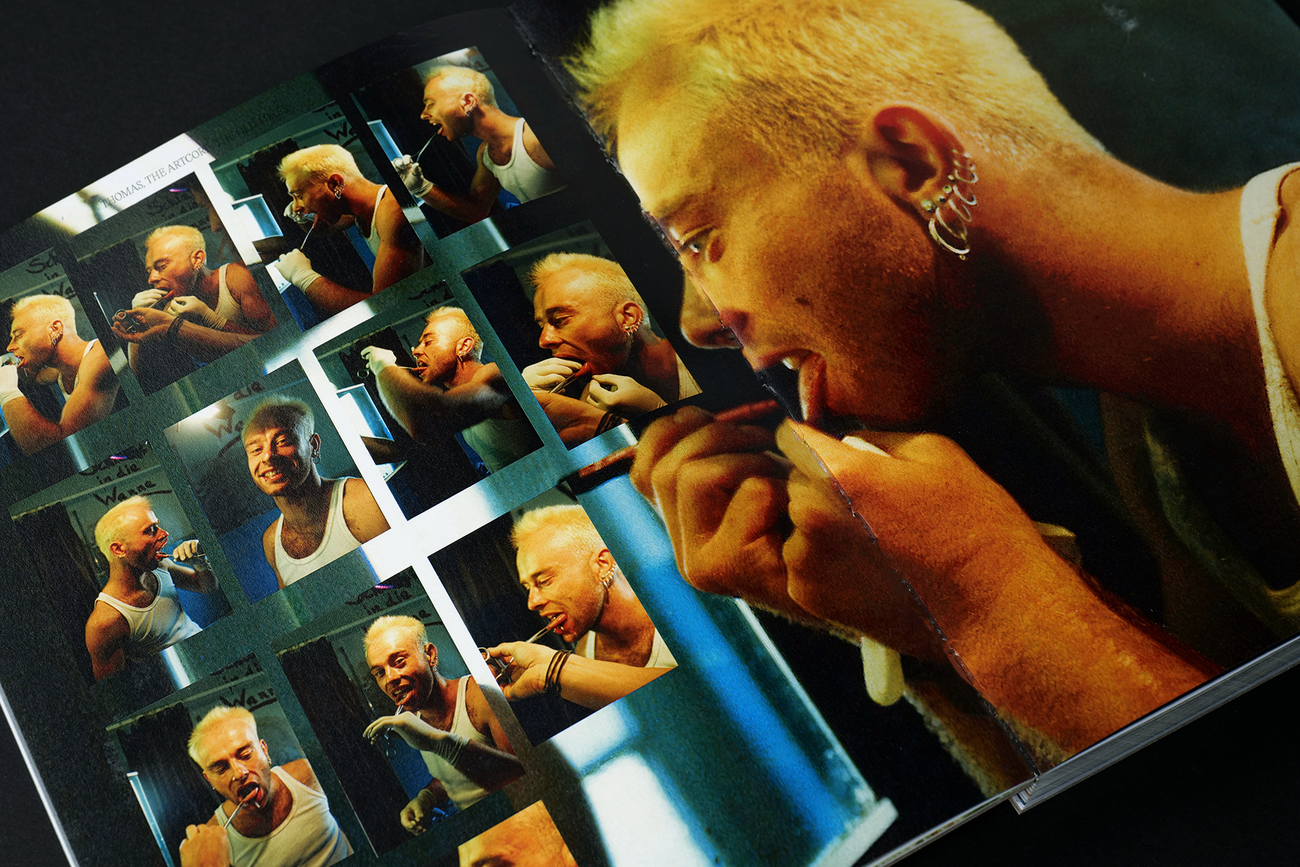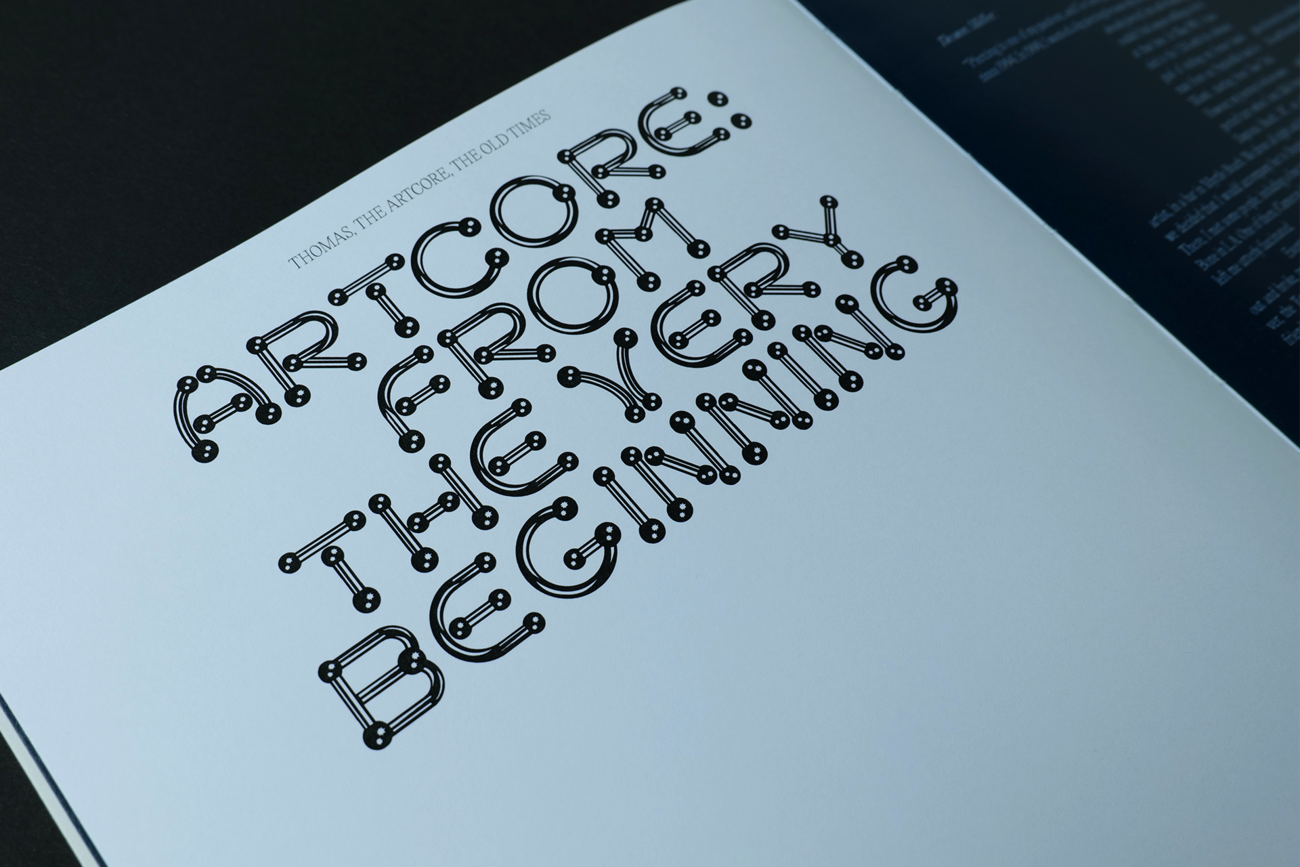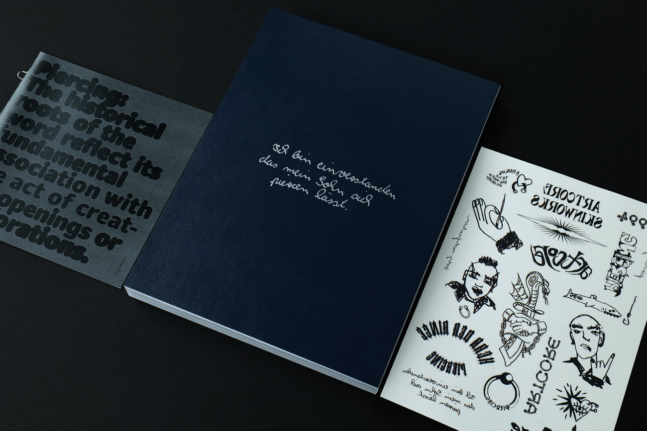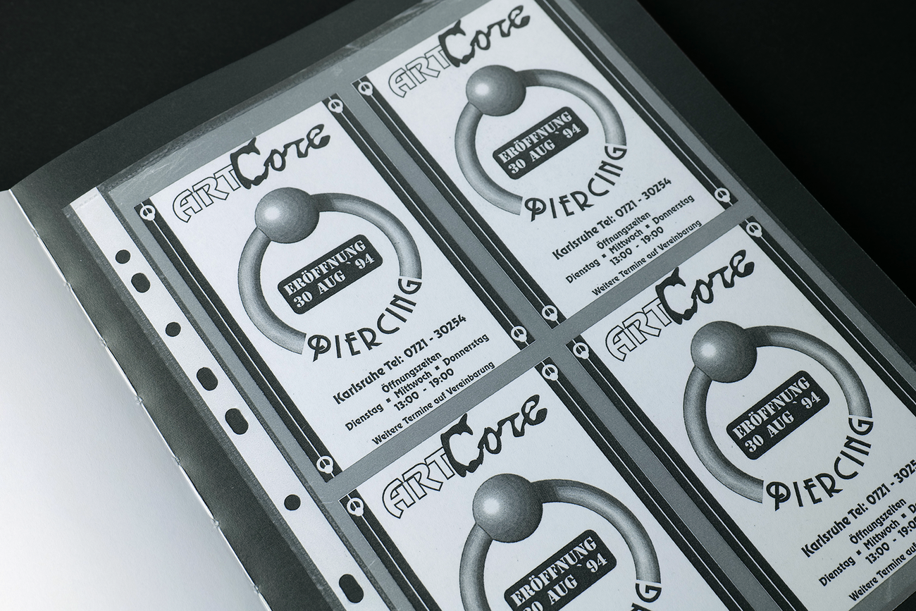 Das Buch ist vier Teile unterteilt. Der erste Teil präsentiert die alten Fotografien, Logos, Flyer und anderen Materialien als Artwork. Der zweite Teil ist ein umfangreiches Interview mit „the one and only“ Thomas Müller. In den weiteren Teilen habe ich mich fotografisch - digital und analog - mit dem Artcore Piercing Studio heute auseinandergesetzt und textlich aufgegriffen wie ich überhaupt als Shopmanagerin dort gelandet bin, obwohl ich keine Ahnung von Piercings hatte.