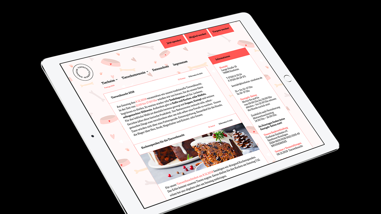 Das Tierheim lebt von Spenden und Menschen die sich aktiv beteiligen. Doch wie soll man sich beteiligen, wenn man keinerlei wichtige Infos über das Tierheim hat wann z.B. wichtige Veranstaltungen stattfinden. Mein Ziel ist es, im Rahmen meiner Bachelorarbeit, ein einheitliches Corporate für den Tierschutzverein gestalten, so dass wichtige Infos wie Spendenaktionen und wichitge Veranstaltungen leichter zu finden sind und sich der Tierschutzverein mit einem klaren, zeitgemäßen Corporate Design präsentiert.