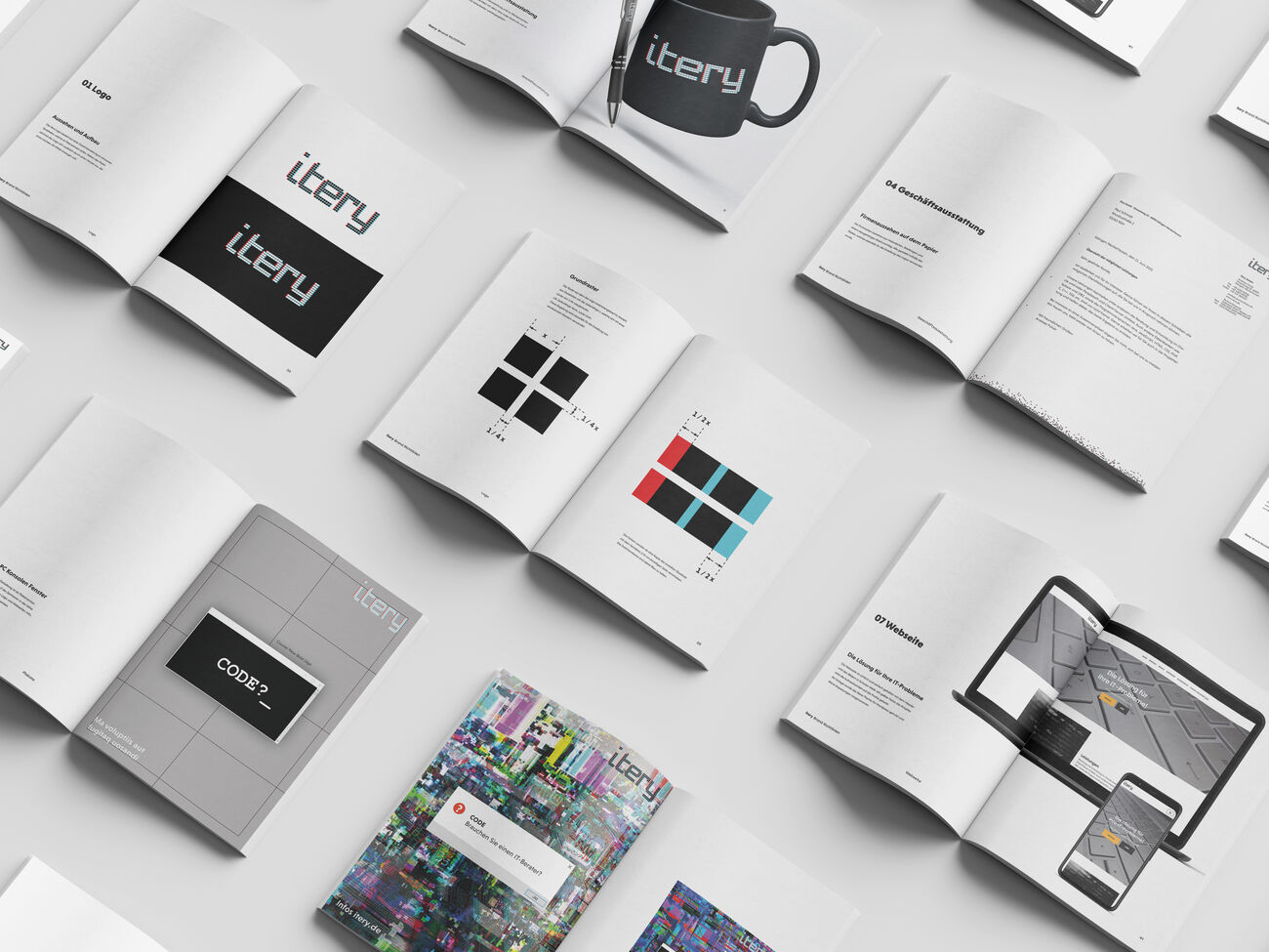 In meiner Bachelorarbeit geht es um ein neues Corporate Design für die itery Gmbh, die Firma eines selbstständigen IT-Beraters. Die besondere Herausforderung sah ich darin, diesen technischen Job in einem Corporate Design wieder zu spiegeln. Für diesen Zweck entwickelte ich ein Raster aus kleinen Quadraten mit einem 3D-Effekt. Dieses Raster wurde schließlich die Gestaltungsgrundlage des Logos und der Geschäftsausstattung. Darüber hinaus erstellte ich eine Onlinepräsenz mithilfe von Wordpress und Werbeplakate für den Außenbereich.