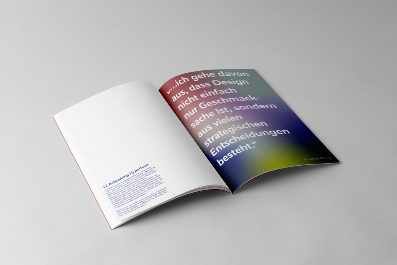 Die Ergebnisse der theoretischen Grundlagen, der Methodik sowie die Gestaltung des explorativen Praxisteils wurden in einem Gesamtkompendium zusammengeführt und visuell aufbereitet. So entsteht ein praktisches Nachschlagewerk für Designer:innen, die Gestaltung bewusster und fundierter einsetzen möchten.