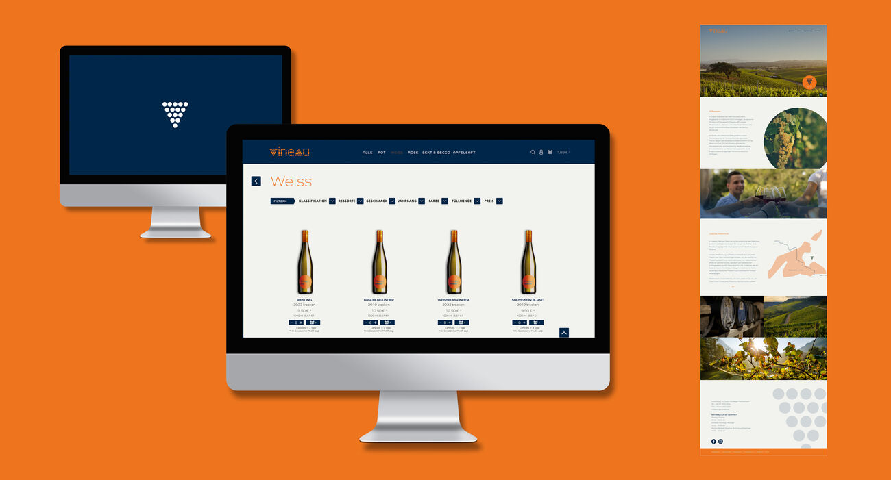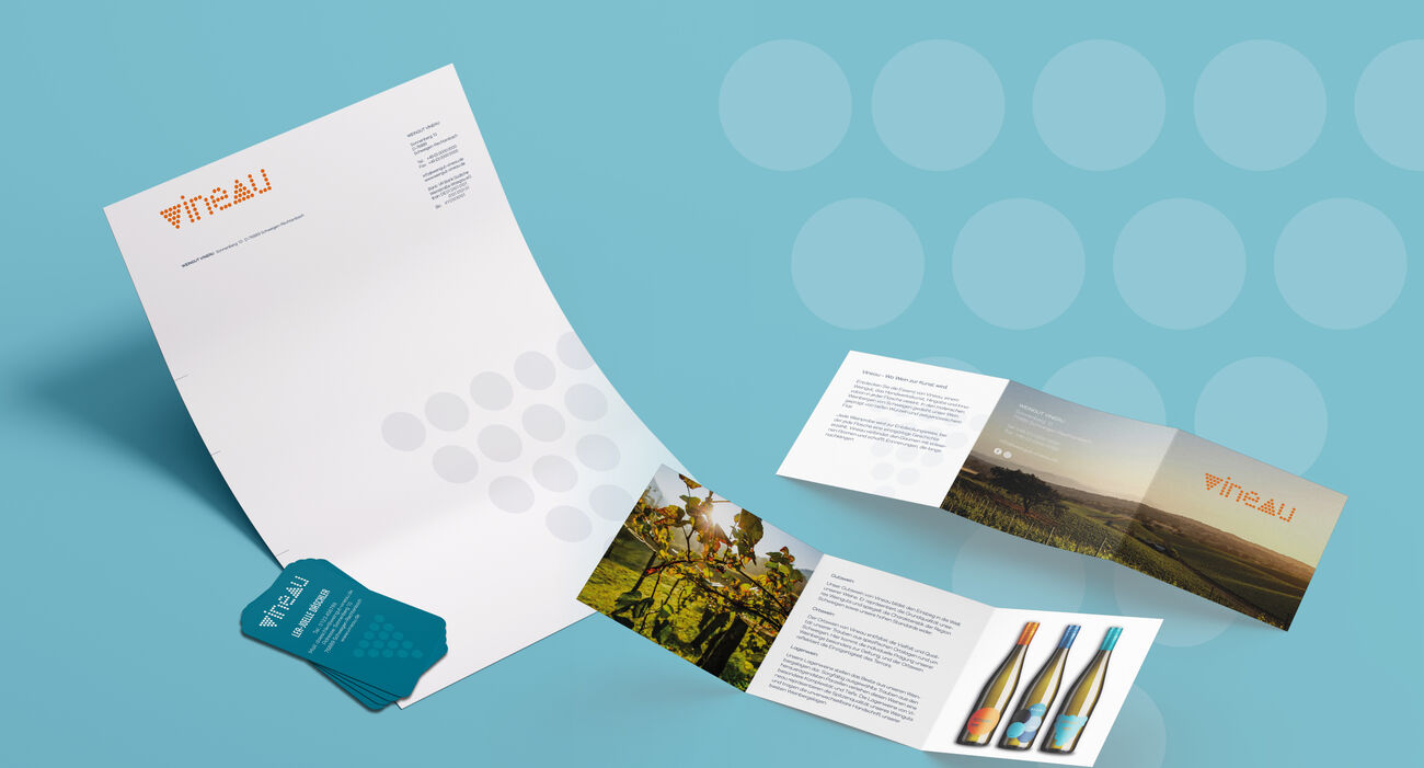 Die Zielsetzung meiner Bachelorthesis war es, für das Weingut Vineau ein neues und modernes Corporate Design zu konzipieren. Als Ergebnis entstanden neue Weinetiketten (vorne und hinten) inklusive Logo, ein Imagefolder, die Geschäftsausstattung und eine Website.