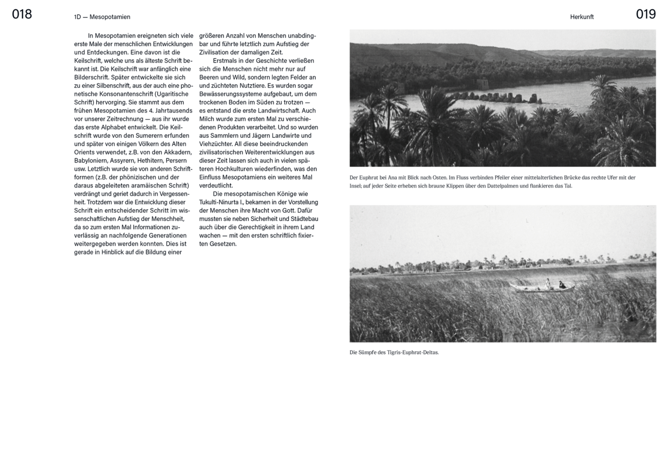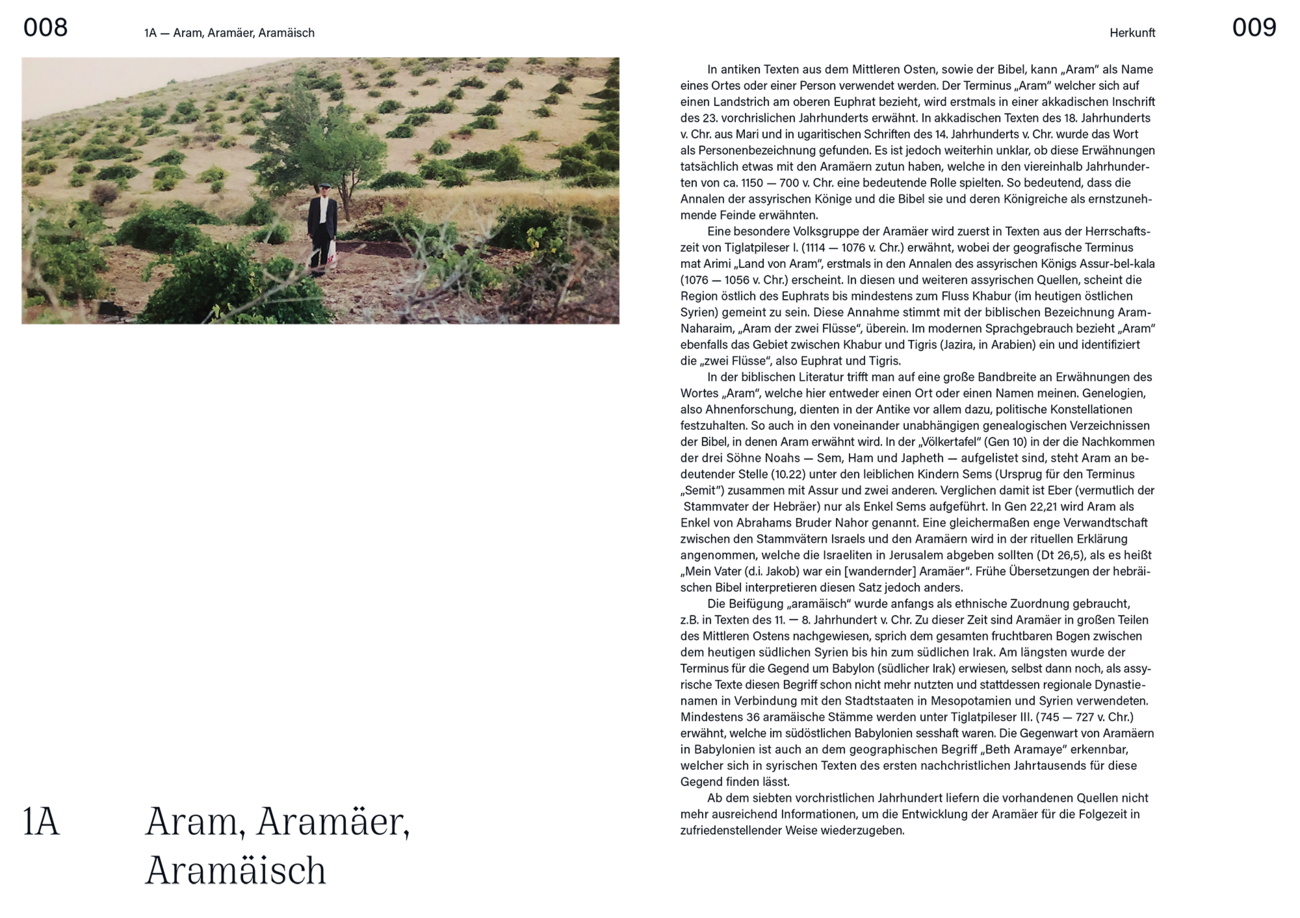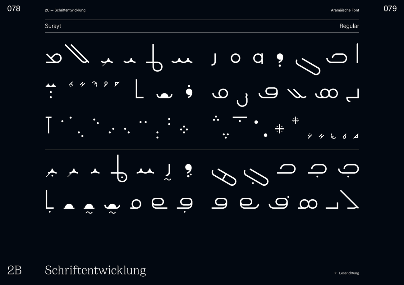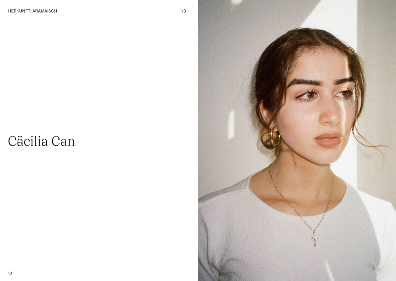 Mit meinem Projekt habe ich mich mit meiner Herkunft auseinandergesetzt — ich bin Aramäerin und die aramäische Schrift ist ein sehr grundlegender Teil der Schriftgeschichte und eine der ältesten Schriften überhaupt. Da die Sprache und die Kultur leider für viele Unbekannt ist, habe ich in meinem Buch die Geschichte der Aramäer veranschaulicht und mich ebenfalls mit der Schrift beschäftigt.