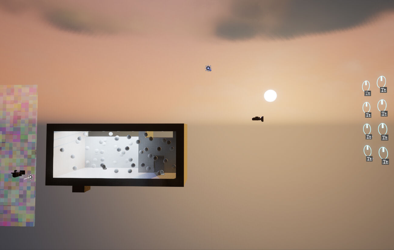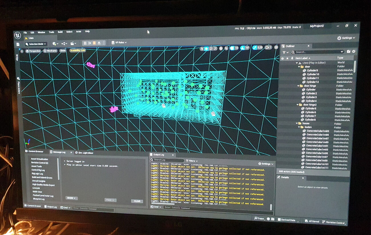 Als 3D Plattform habe ich Unreal Engine 5 gewählt, was sich durch seine Vielseitigkeit in den Anwendungsmöglichkeiten, das Echtzeitrendering und Fotorealismus auszeichnet. Die Controller basieren auf einem Wifi-fähigen Arduino Nano. Die Musik wurde mit Ableton Live realisiert. Für die Kommunikation über Wifi und zwischen Programmen dient das OSC Protokoll.