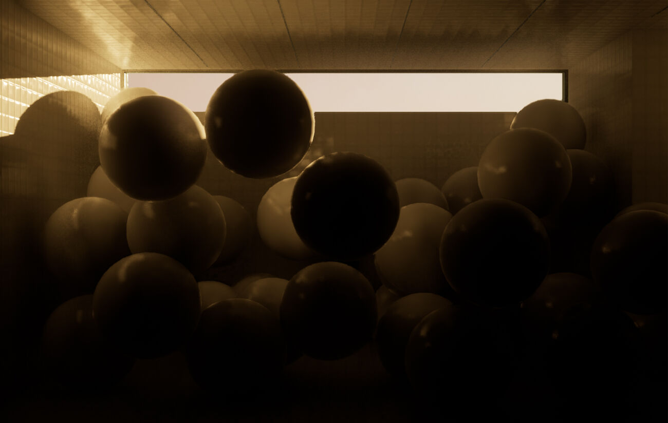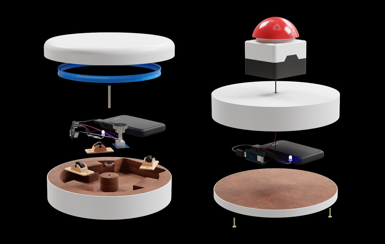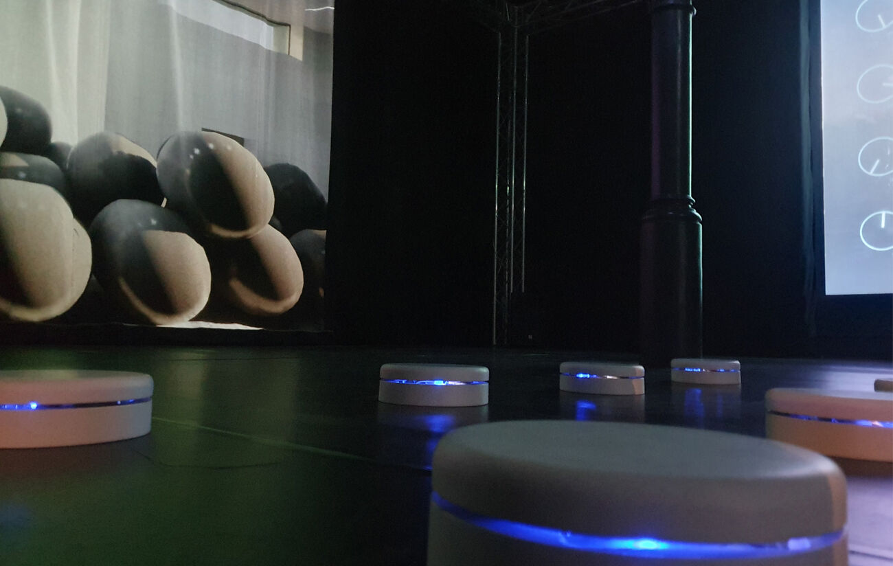 Genau hier setze ich auch in meiner Installation an: Die Inputs so weit wie möglich reduzieren und den Output maximieren. Ich habe neun große, leicht zu bedienende und minimalistische Controller gebaut, mit denen man Objekte einer übersichtlichen, aber immer gut aussehenden 3D Szene, sowie Elemente eines Soundtracks steuern kann.