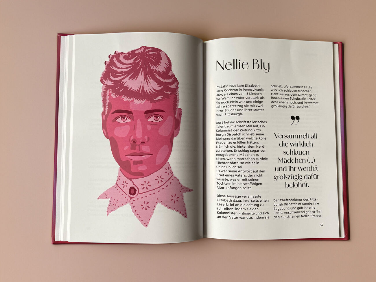In meinem Buch „It’s time to write Herstory“ erzähle ich die Lebensgeschichten von zehn Frauen, die in unterschiedlichen Gebieten brilliert haben, deren Handlungen, Namen und Portraits heute jedoch kaum ein Mensch kennt. Oftmals liegt die Erklärung für ihr Verschwinden aus der Geschichte darin, dass unsere Welt auf Männer ausgelegt ist. Indem ich ihre Portraits illustriert und ihre Biografien aufgeschrieben habe, möchte ich ihnen ihre Stimme und Sichtbarkeit und der Welt viele inspirierende Vorbilder zurückgeben.