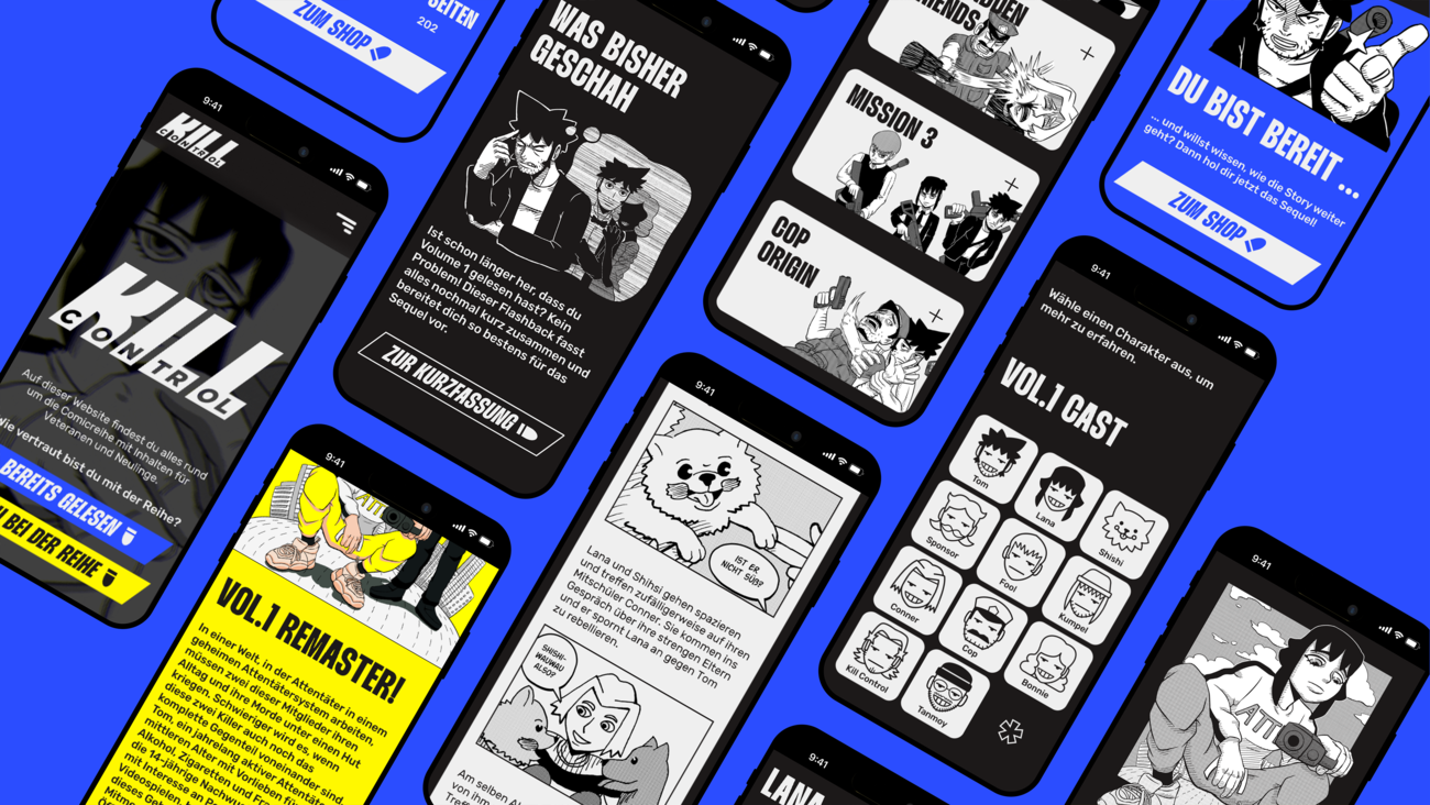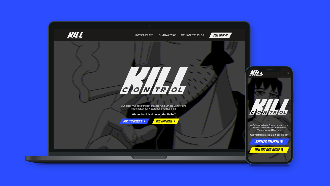 Zielsetzung meiner Bachelorarbeit ist eine begleitende Website zu meiner Comicreihe zu kreieren, welche Leser mit Zusammenfassungen informiert und Interessierte durch ansprechende Inhalte zum Kauf verleitet, ohne dass ich selber aktiv werden muss. Doch damit nicht genug! Damit die Website auch ordentlich werben kann, habe ich KILL CONTROL VOL.2 fertiggestellt und einen passenden Trailer kreiert.
