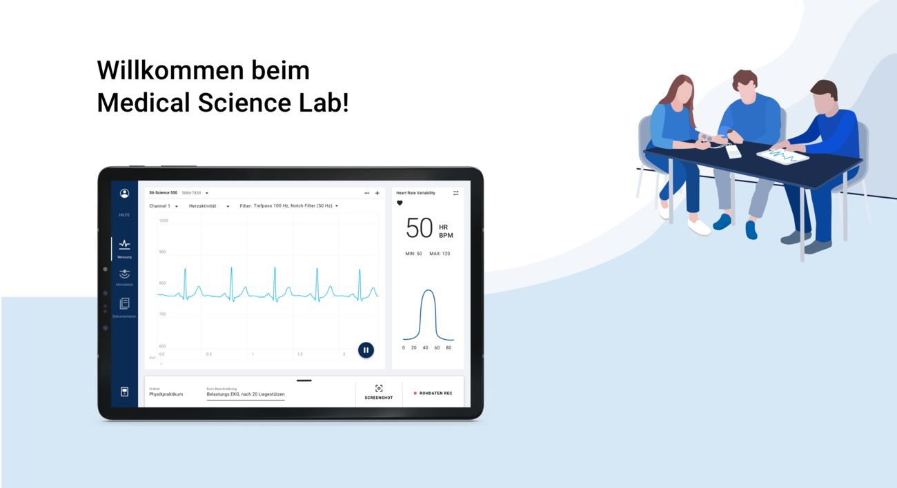 Das Gerät dafür haben Prof. Dr. P. Nguyen und sein Team der MME Mannheim Medizinelektronik UG entwickelt. Mithilfe dieses Geräts können Biosignale gemessen und Elektrostimulationen durchgeführt werden. Das hilft den Medizinstudenten, die Physik des menschlichen Körpers besser zu verstehen. In meiner Arbeit möchte ich den Fokus auf die Nutzer richten und die Anwendung für diese zu einem intuitiven Erlebnis gestalten. Durch qualitative und quantitative Methoden (Shadowing, Interviews, Fragebogen) konnte ich ermitteln, wie die Studenten mit der Anwendung arbeiten, welche Funktionen gebraucht werden, welche Bedürfnisse sie haben und welche Fragen aufkommen. Auf dieser Basis konnte ich die Anwendung gestalterisch überarbeiten und erweitern.