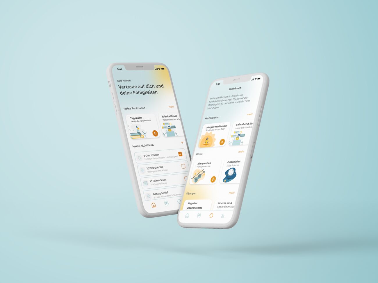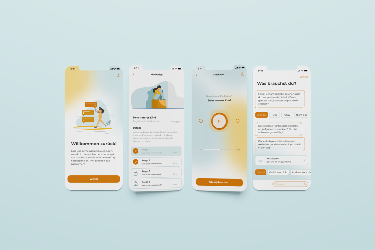 Daher beschäftigt sich meine Bachelorarbeit mit dem Konzept und Design einer App, die alle wichtigen Funktionen und Hilfsmittel vereint, um dem Nutzer eine Routine zu ermöglichen und ihm somit langfristig helfen zu können. Sie dient als Begleiter und Unterstützer, soll den Nutzer über seine Symptome aufklären und dabei zeigen, welche Wege es gibt, ihm zu helfen und an sich zu arbeiten. Die App wird durch KI unterstützt. Sie merkt sich die Angewohnheiten und Probleme des Nutzers und analysiert diese. Dadurch kann die App den Nutzer besser unterstützen und ihm speziell für seine Funktionen aufzeigen und anbieten.