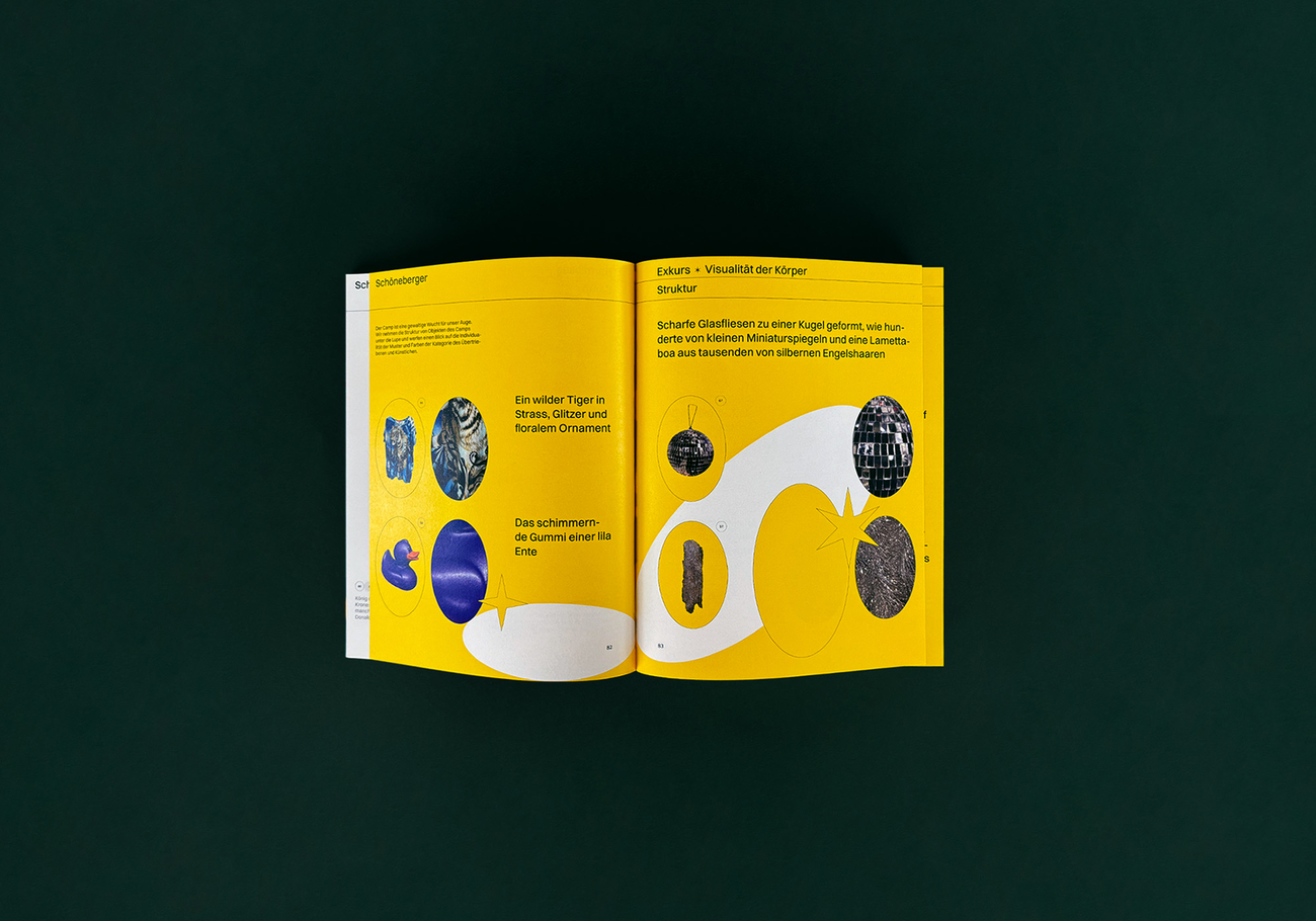Die 433-seitige Arbeit gibt insgesamt zwölf ästhetischen Rubriken wie Kitsch oder Abstoßendem Raum und bietet pro Rubrik Einblick in ein fotografisches Archiv aus Objekten, die die jeweilige Ästhetik repräsentativ bebildern.
