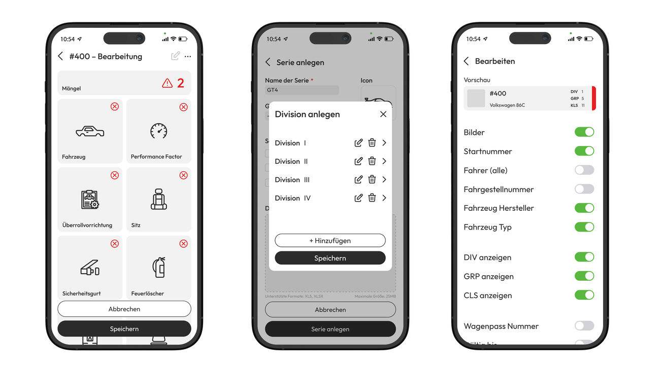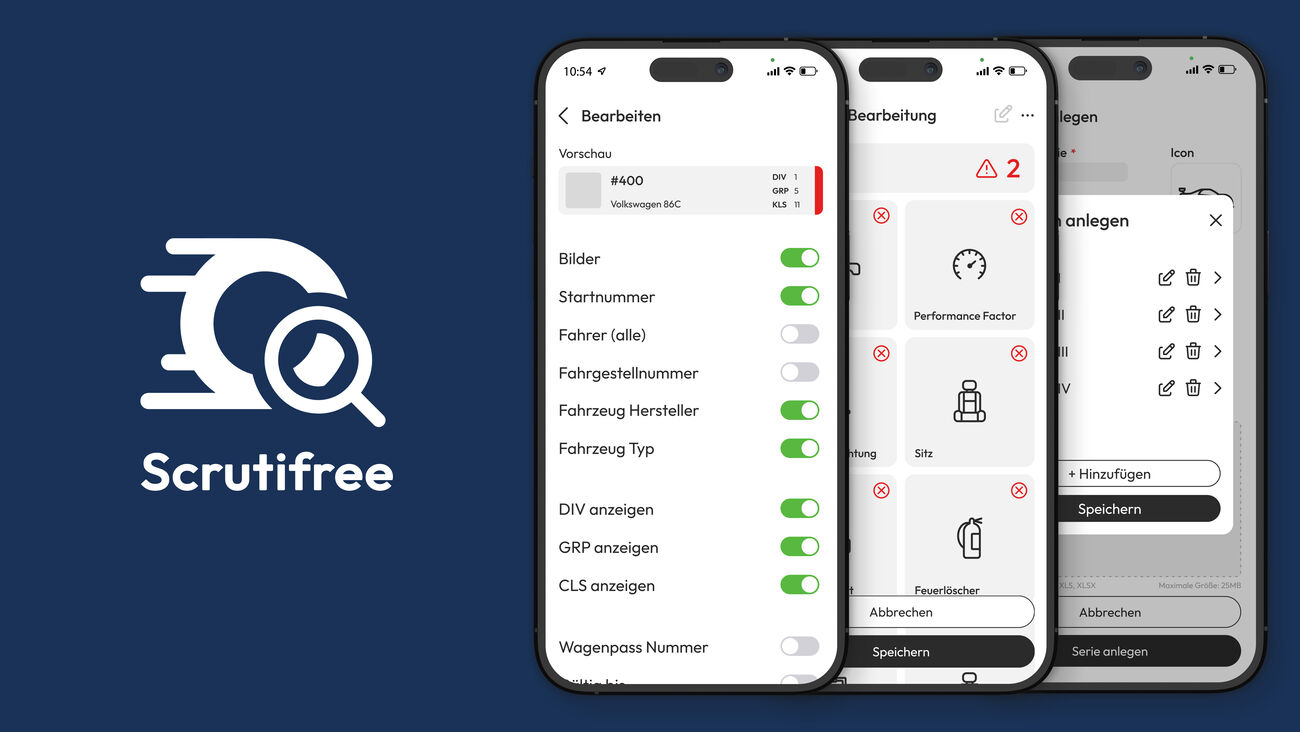 Die App Scrutifree erleichtert den Arbeitsalltag der technischen Kommissar*innen. Sie bietet den technischen Kommissar*innen einen Zugang zu einer Anwendung für tragbare Geräte, mit der sie ihre Abnahmedaten übersichtlich und ordentlich abspeichern, sowie Screens für ihre spezifischen Rennserien und Anwendungen erstellen und modifizieren können.
