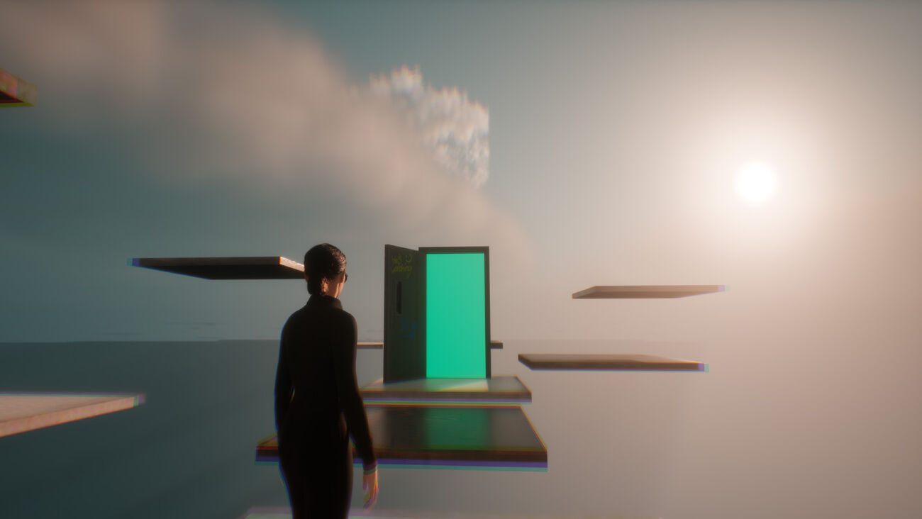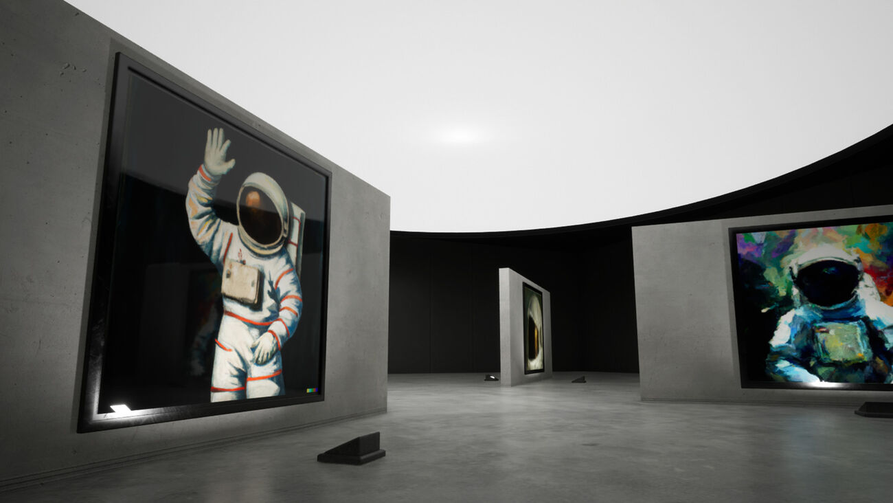Das Spiel lädt eine virtuelle Kunsthalle, in der KI generierte Kunstwerke ausgestellt werden. Hierbei geht es nicht nur um blanke JPEGs. Die Exponate bieten auch ein ungewöhnliches Erlebnis. Springe in ein digitales Gemälde rein und ein Level öffnet sich, löse das Puzzle und schalte somit weitere Ausstellungsräume frei. Jeder dieser Räume bilden ein Kapitel in der Geschichte des einsamen Astronauten. Somit erfährt man Stück für Stück mehr über unseren Helden.