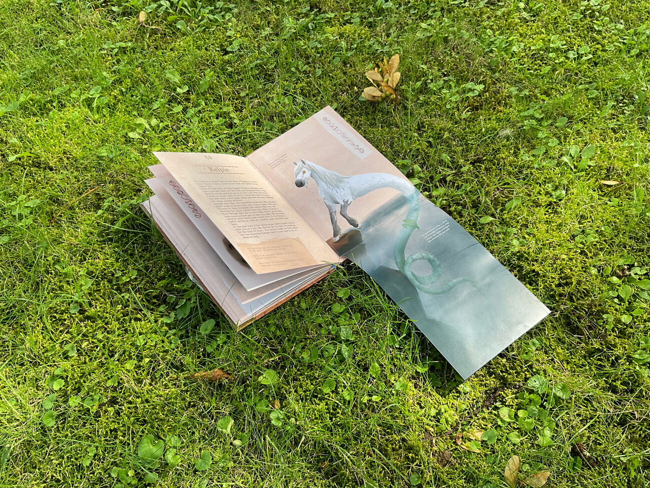 In diesem Buch gebe ich einen Einblick in die Fantasiewelt, die ich geschaffen habe. Ich erkläre und visualisiere all die Fabelwesen, die eine wichtige Rolle für die Handlung meines Romans spielen. Das Projekt ist so ausgelegt, als hätten meine Buchcharaktere es verfasst, damit sie es in dieser Spiegelwelt verwenden und weitergeben können. Mit Aquarell, Tinte, Papier, schottischem Stoff und digitalen Hilfsmitteln ist eine Art Wegweiser entstanden, die einem mehr Informationen über mein Worldbuilding liefern soll. Zudem bringt diese Arbeit auch ein paar Projekte meines Studiums zusammen.