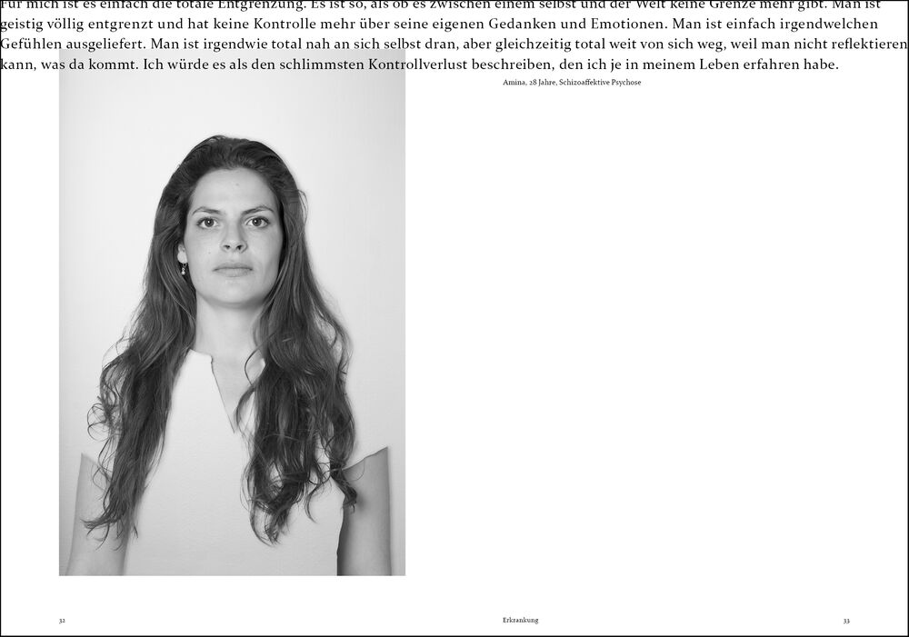 In dem entstandenen 66-seitigem Buch wird sich dem sensiblen und voruteilsbelasteten Thema Schizophrenie etwas anders genähert. Hier wird nicht das x-te Mal von einem Psychiater oder Psychologen über die Diagnose gesprochen, sondern von neun davon Betroffenen selbst erzählt. Das Ziel dabei ist, Stigmatisierung und Tabuisierung zu brechen. Kapitelweise wechseln sich Sachinformationen und Zitate in zwei unterschiedlichen Textebenen ab. Der Sachtext klärt auf, beseitigt falsches Wissen und gibt Erstbetroffenen und Angehörigen einen initialen Überblick. Die persönlichen Zitate zeigen eigene Erfahrungen auf und lassen das Erleben besser nachvollziehen. Portraits der Betroffenen sowie deren Zitate sind visuell so umgesetzt, sodass das Gesagte verbildlicht wird.