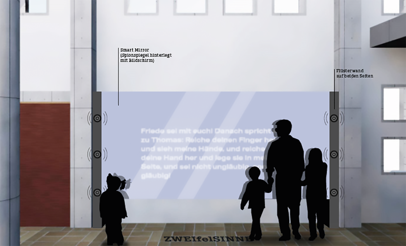 Gleich zweimal gewinnen Studentinnen der Fakultät für Gestaltung den der Thomasgemeinde in Ökomenekirche St. Pius in Mannheim für Künstlerinnen und Künstler ausgeschriebenen Wettbewerb für eine Kunstinstallation, der sich mit den Motiv des »Zweifelns« beschäftigt.