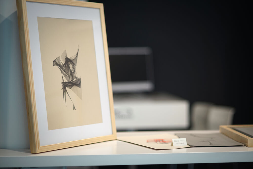 Alle Arbeiten sind generativ entstanden. Die Grundlage der Arbeiten war ein Processing Code der von den Studierenden abgewandelt wurde und die entstandenen Arbeiten wurden dann über Stiftplotter ausgegeben. So wurden digitale und analoge Arbeitstechniken verbunden.
