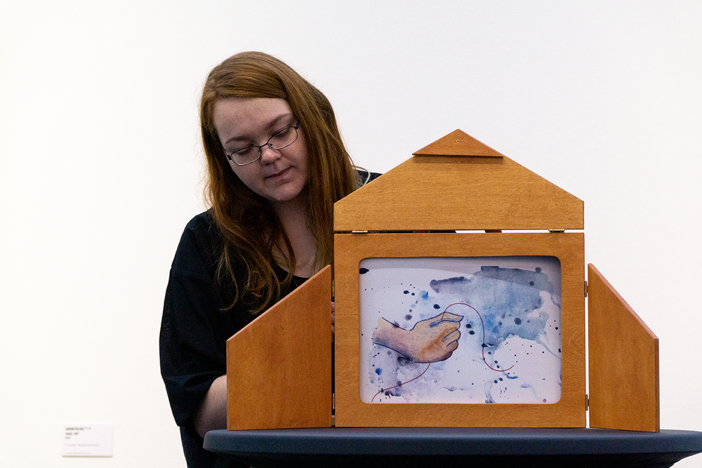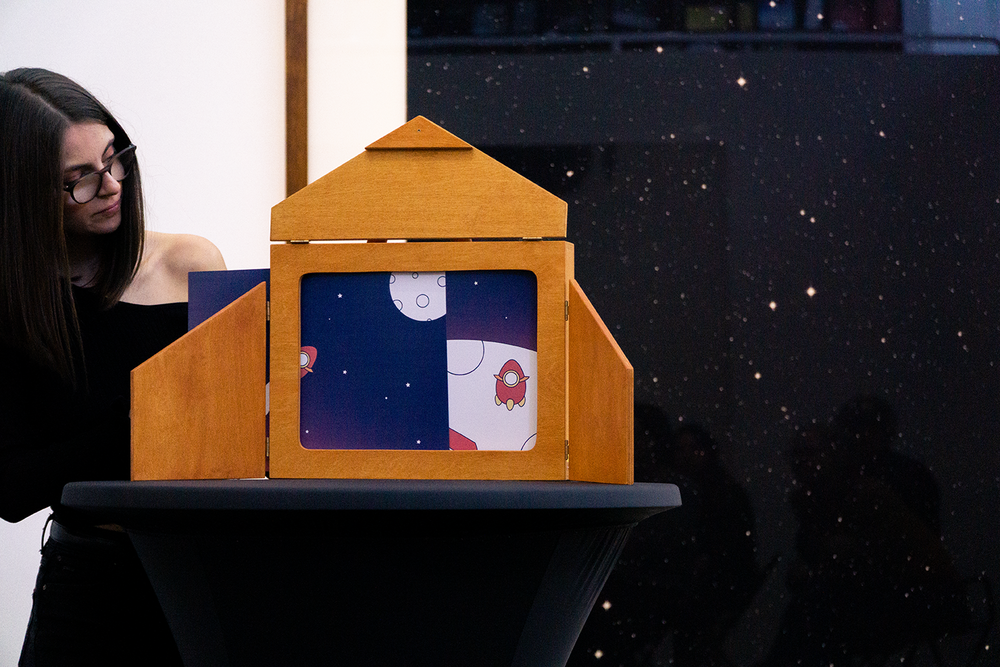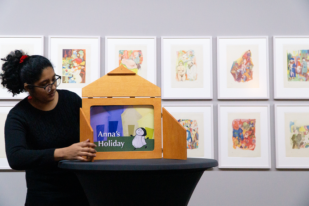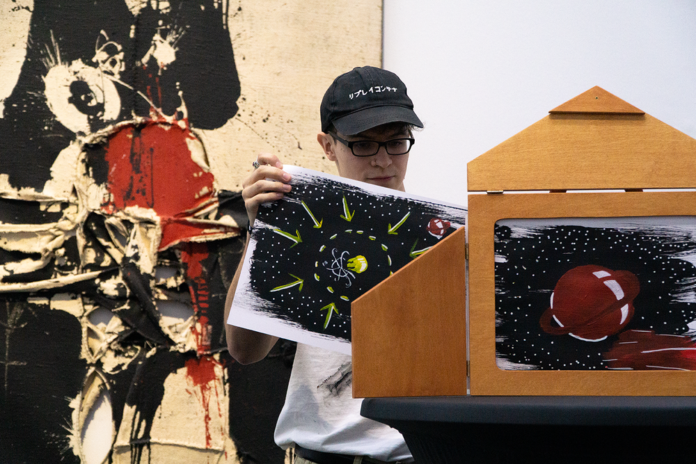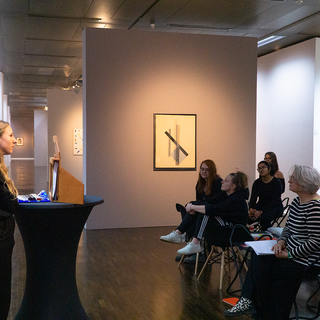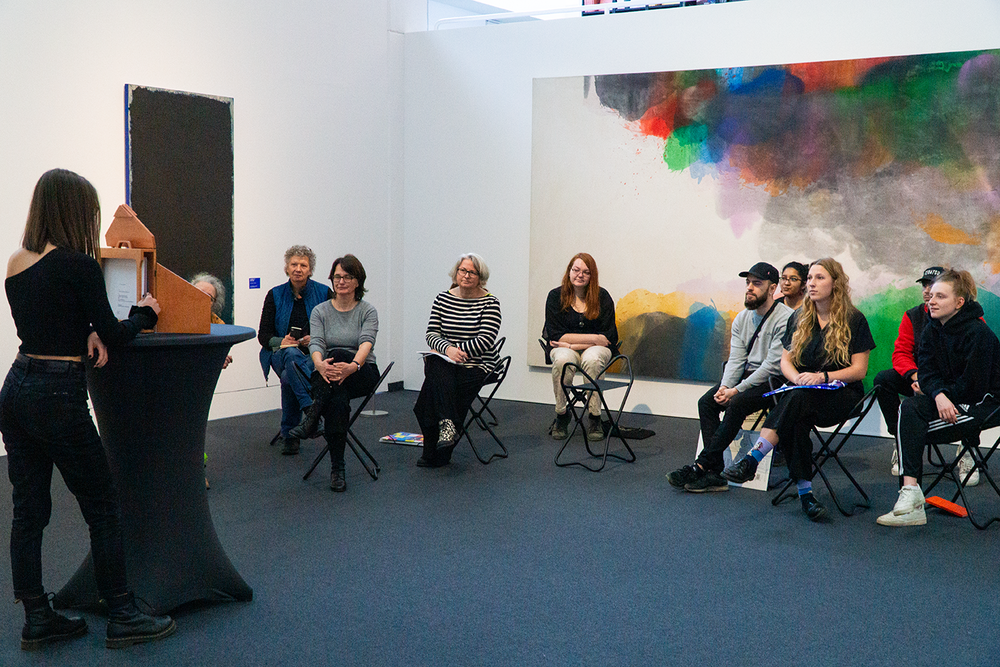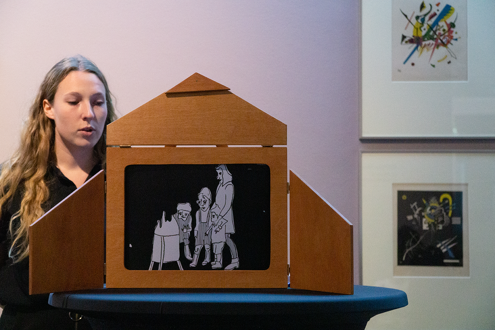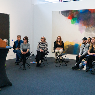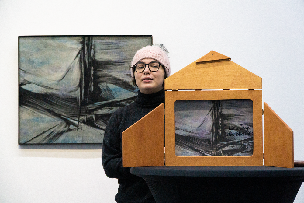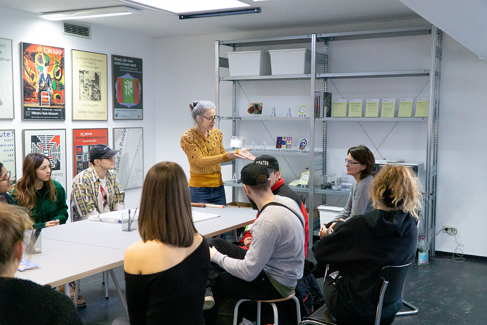 Zehn kurze Geschichten sind entstanden, die sich inhaltlich und formal auf Werke aus der aktuellen Ausstellung des Wilhelm-Hack-Museums beziehen. An der Präsentation der Ergebnisse vor den originalen Werken nahmen auch die Kuratorinnen des Museums, Frau Dr. Julia Nebenführ und Frau Theresia Kiefer, die Verlegerin Aya Puster und die Frankfurter Kamishibai-Expertinnen Elisabeth Ehrhorn und Carmen Sorgler teil.