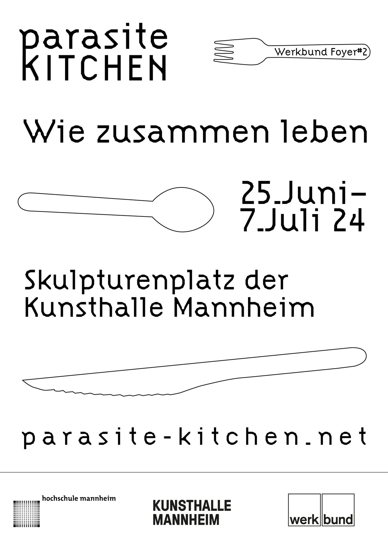 Nach Ende der Vorlesungsreihe Wie zusammen leben?, die im Sommersemester der Hochschule Mannheim, Fakultät für Gestaltung, angeboten wurde und in der Kunsthalle zu Gast war, starten nun die daran anknüpfenden Projektwochen. Unter dem Motto Parasite Kitchen wird für zwei Wochen im Sommer auf dem Skulpturenplatz der Kunsthalle Mannheim eine temporäre Küche eingerichtet, die zum gemeinsamen Kochen sowie zu Gesprächen mit der Öffentlichkeit einlädt.