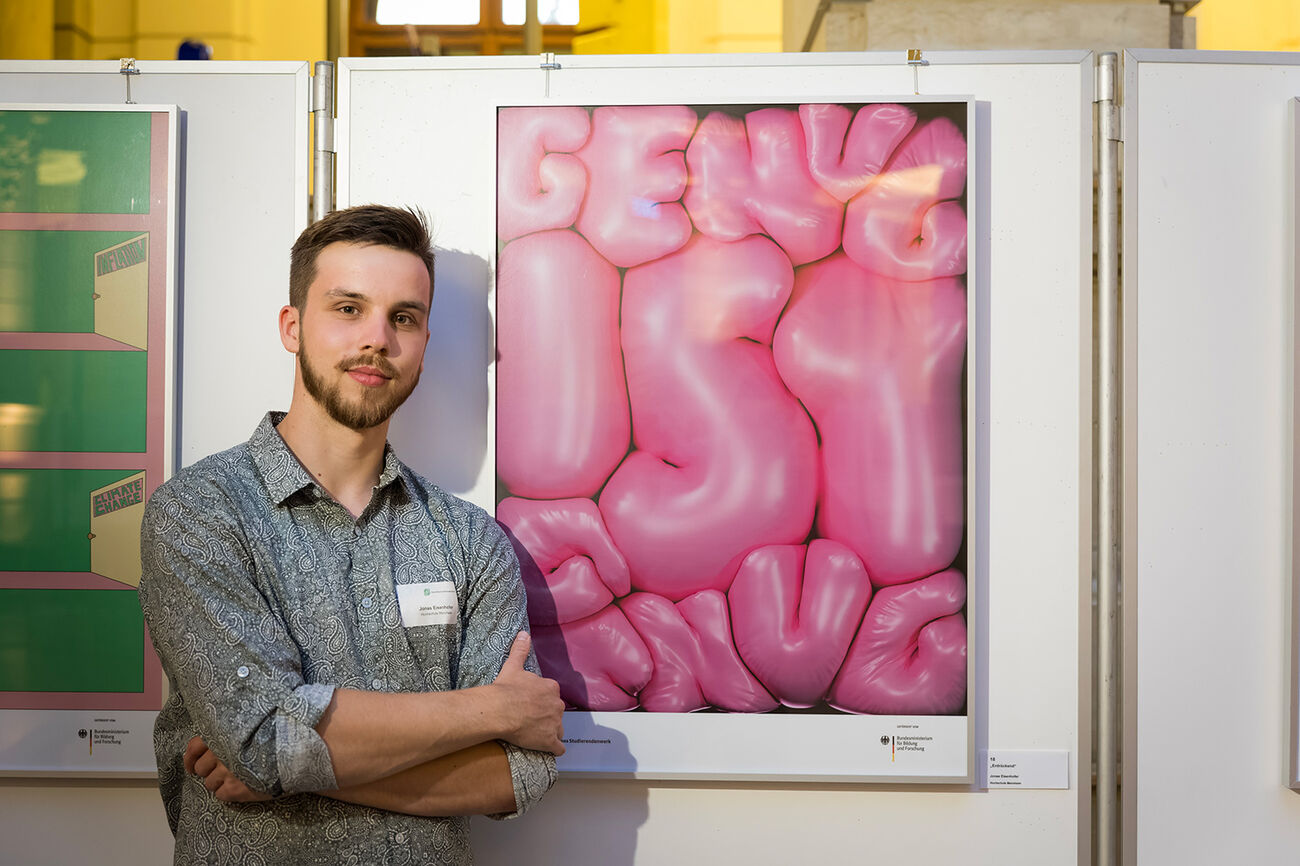 38. Plakatwettbewerb des Deutschen Studierendenwerks, Thema: „Raus aus dem Krisenmodus!“, gefördert vom Bundesministeriums für Bildung und Forschung; Foto: Kay Herschelmann